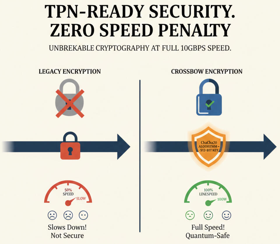 Implementing encryption often results in a significant performance hit with traditional tools.CROSSBOW utilizes the ChaCha20 algorithm, which is specifically well-suited for high-speed software encryption of large media payloads. This allows for robust security of your in-progress assets and unreleased IP while minimizing the impact on transfer speeds.